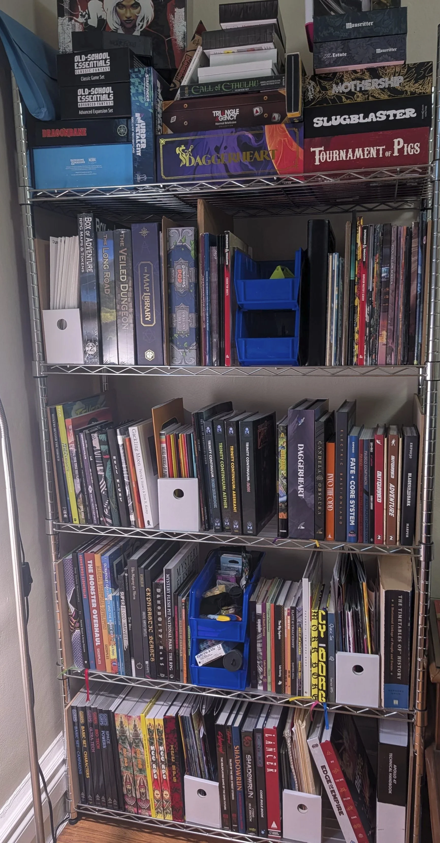In 2025 I purchased not one, nor two, but three new shelving units for my home to free up a bit of space for my expanding library. Dolmenwood, Paranoia, Fallout, X-Crawl Classics, LANCER, and a dozen more systems were added to my collection. Whole games and editions were shuffled into bankers boxes, those boxes into a storage unit so that the new games could have a bit more room to breathe. I haven’t had a chance to play more than a fraction of the games on the shelf, much less the new ones.